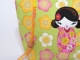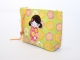 This zippered pouch is great for cosmetics or a little bag to carry around your valuables. The very cute Kokeshi doll gives the bag an oriental touch. The tassel is also a hand-woven creation.
