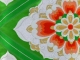 Vintage Japanese Obi green fabric with white, orange and gold embroidery accents.
